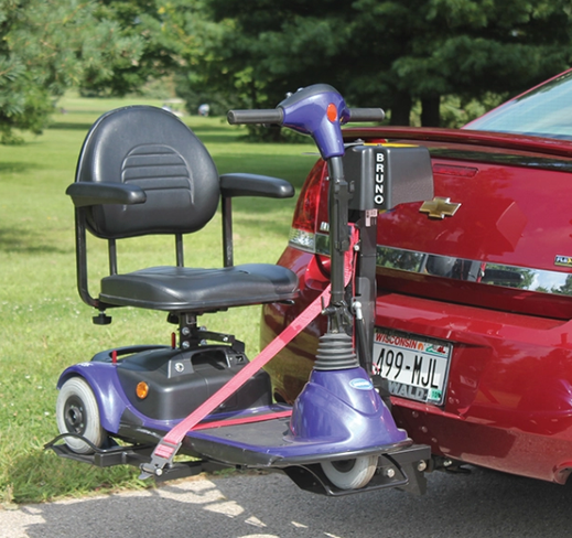 Get to your destination with your 3-wheel travel scooter using Bruno’s Out-Sider Micro. Bruno's lightest outside scooter lift, the Out-Sider Micro power lifts a travel scooter with a push of a button and its low-profile design minimizes rear-vision obstruction. Travel light with Bruno's Out-Sider Micro.