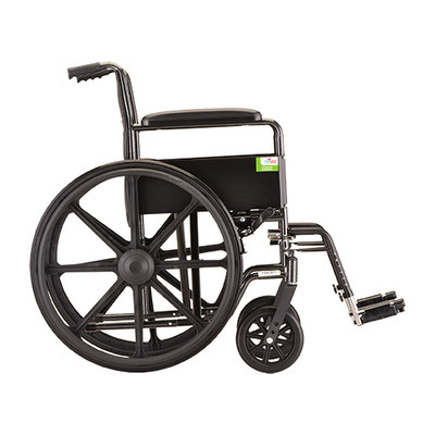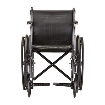 The Steel Wheelchair 18 inch (5080S) comes equipped with fixed full-length arms and swing away footrests. It also features dual axle positions for quick seat height conversion and flame retardant black vinyl upholstery. There are industry compatible accessories available for this product.