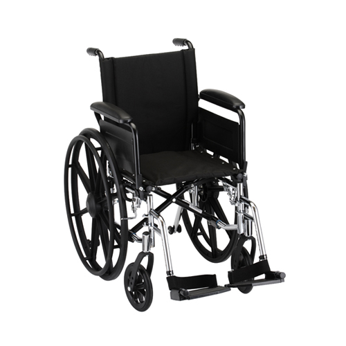 The 16" Lightweight Wheelchair by Nova has a lightweight design available in a variety of options. It features dual axle positions for quick seat height conversion and flame retardant black nylon upholstery. There are industry compatible accessories available for this product.